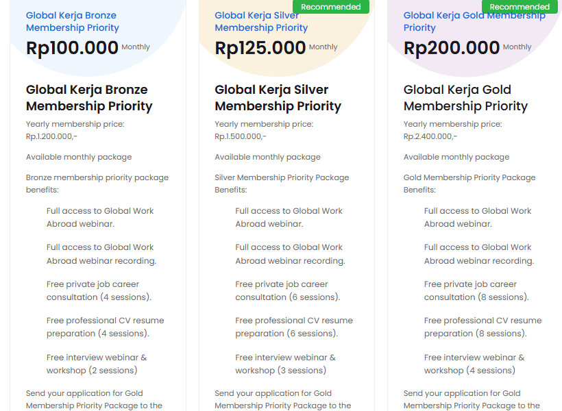 Please follow the steps below: Open the member priority portal www.membership.globalkerja.com Please choose the package Cart – Global Kerja Membership